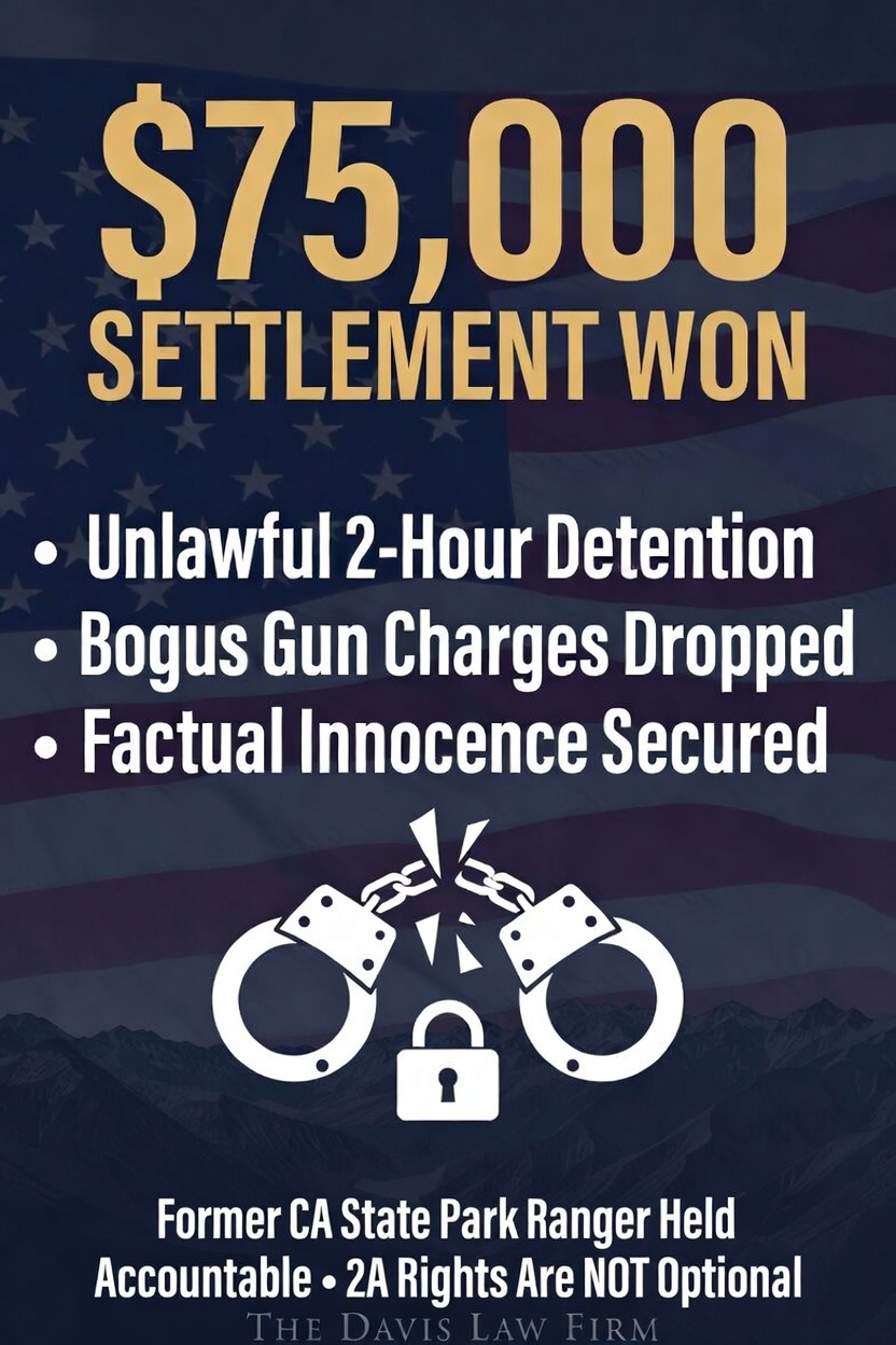 The Davis Law Firm is committed to protecting the constitutional rights of law-abiding Californians, with a particular focus on civil rights and Second Amendment litigation. The firm continues to fight against government overreach and hold law enforcement accountable for unlawful actions.